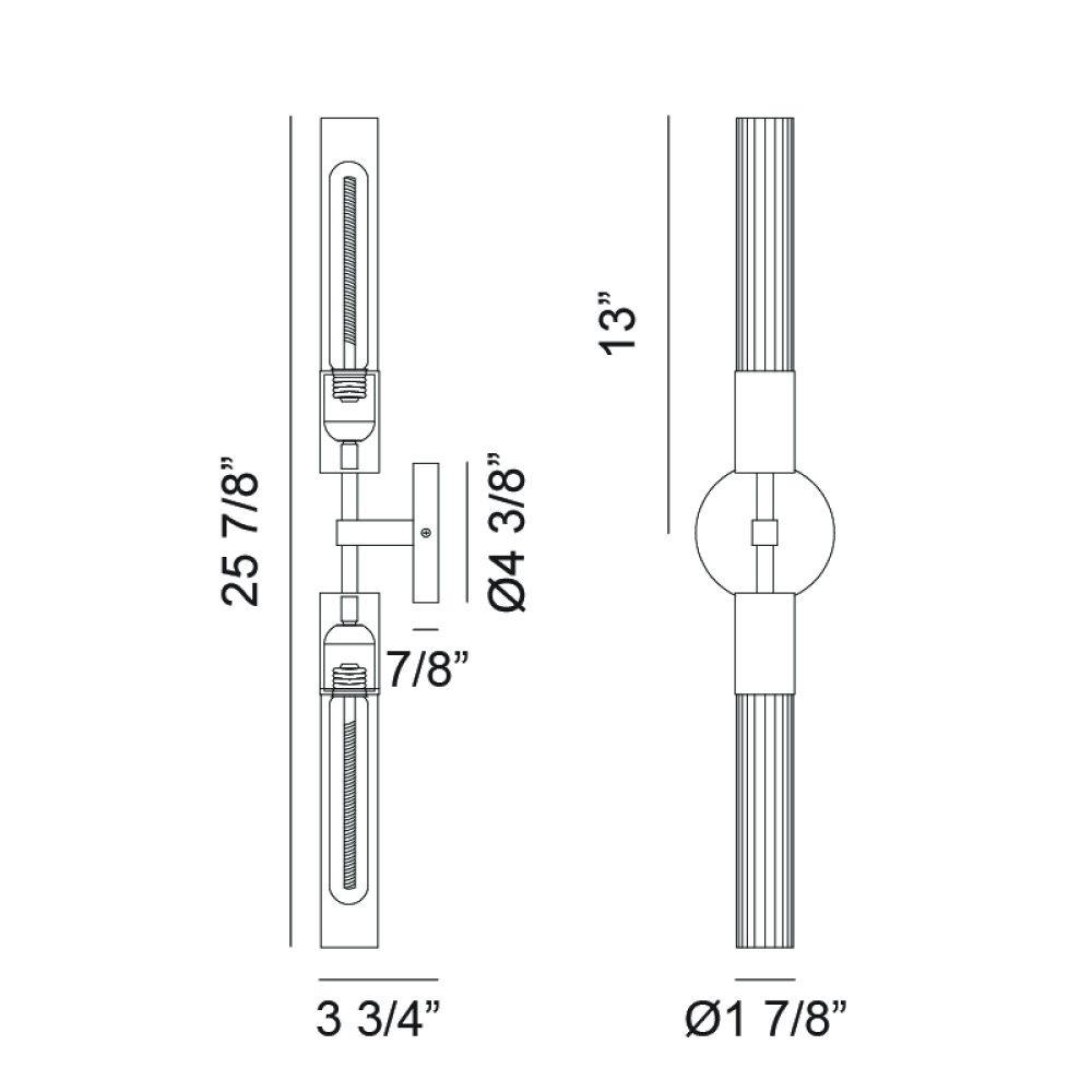 The Lumie?re is a modern wall vanity in an Aged Gold Brass or Matte Black socket and round backplate complemented by ribbed glass. Available in single or 2 light.