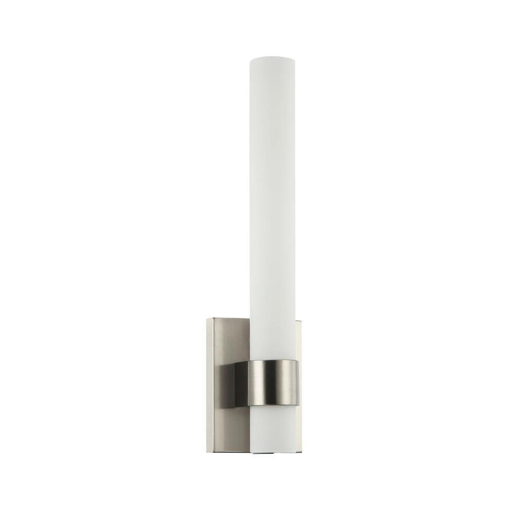 Dedicated LED Vanity or Wall Light with Cylinder White Glass Lens in Satin Nickel Finish, Horizontal mount.