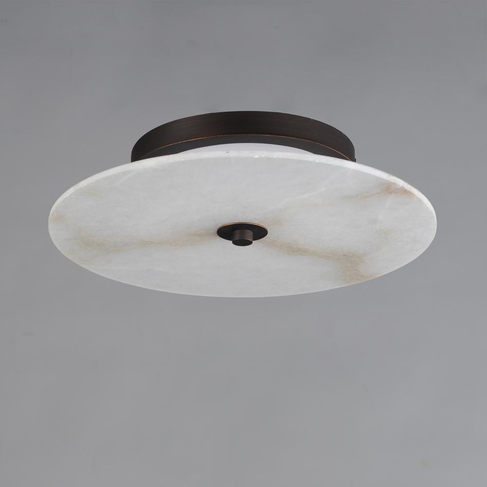 Modern in execution, the Quarry collection features natural Spanish alabaster in an iron frame finished in Darkened Bronze or Natural Aged Brass. Dedicated LED housing shine light on alabaster panels, highlighting the stone's beautiful, veined characte
