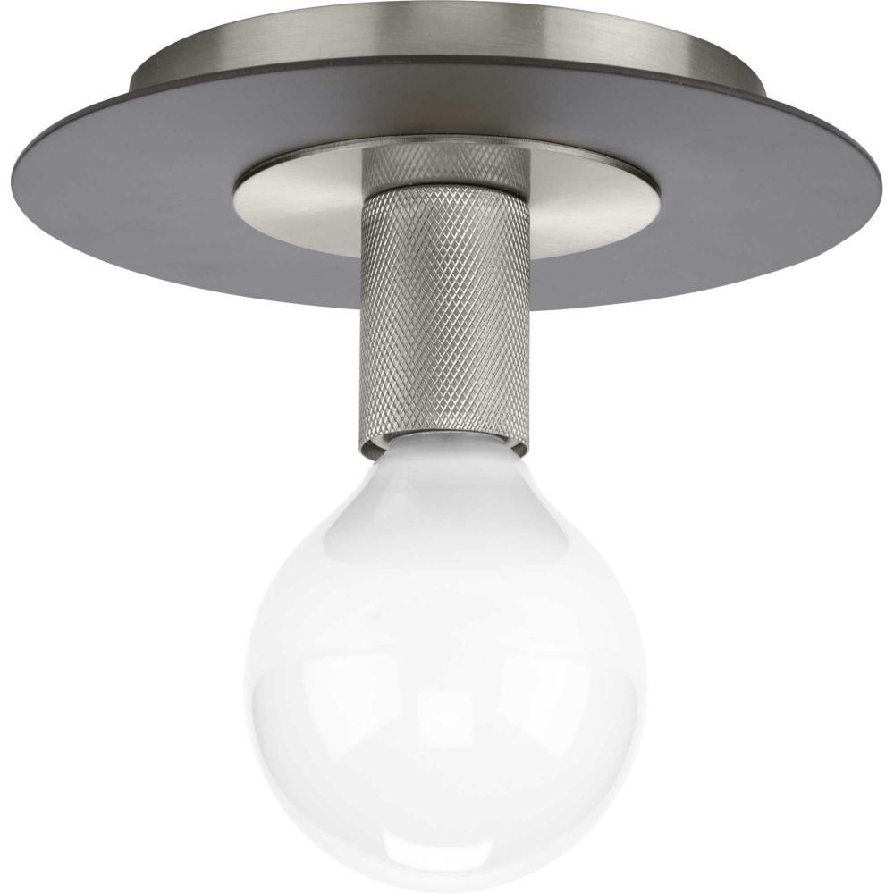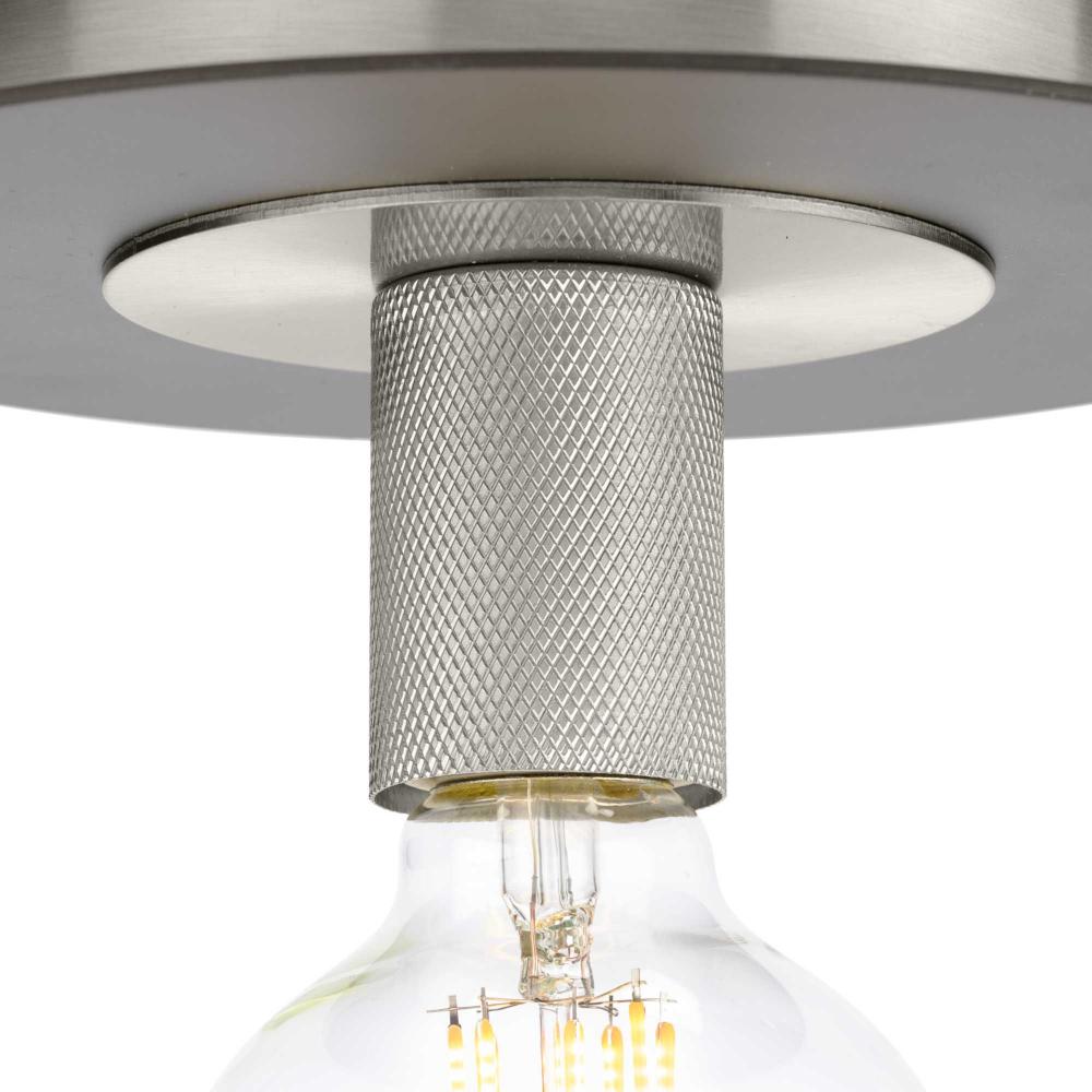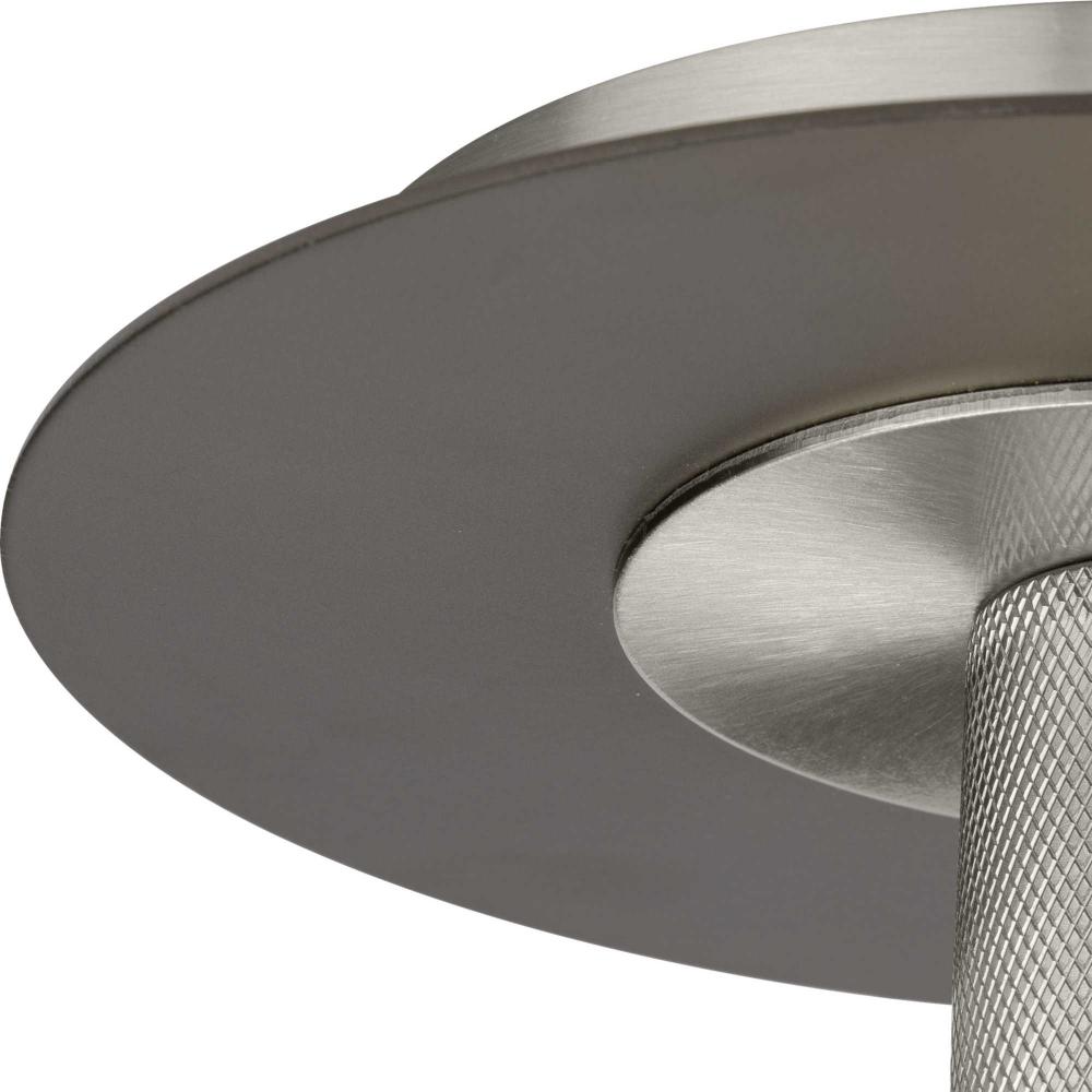 An intriguing flat disc shade forms the basis of the Trimble Collection, whose mid-century modern inspiration is perfect for open spaces in mid-century modern and luxe industrial settings. A two-toned finish on the shade features subtle brushed nickel and crisp graphite, plus a knurled metal lamp socket is coated in brushed nickel providing additional rich visual interest. Use vintage-style bulbs to add modern appeal and to cast crisp illumination to kitchens, bedrooms, hallways and foyers.