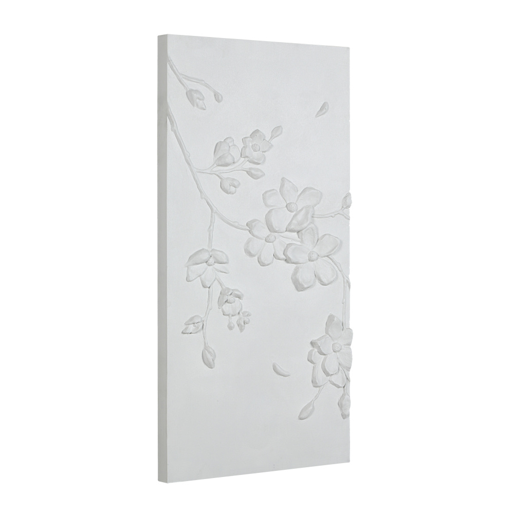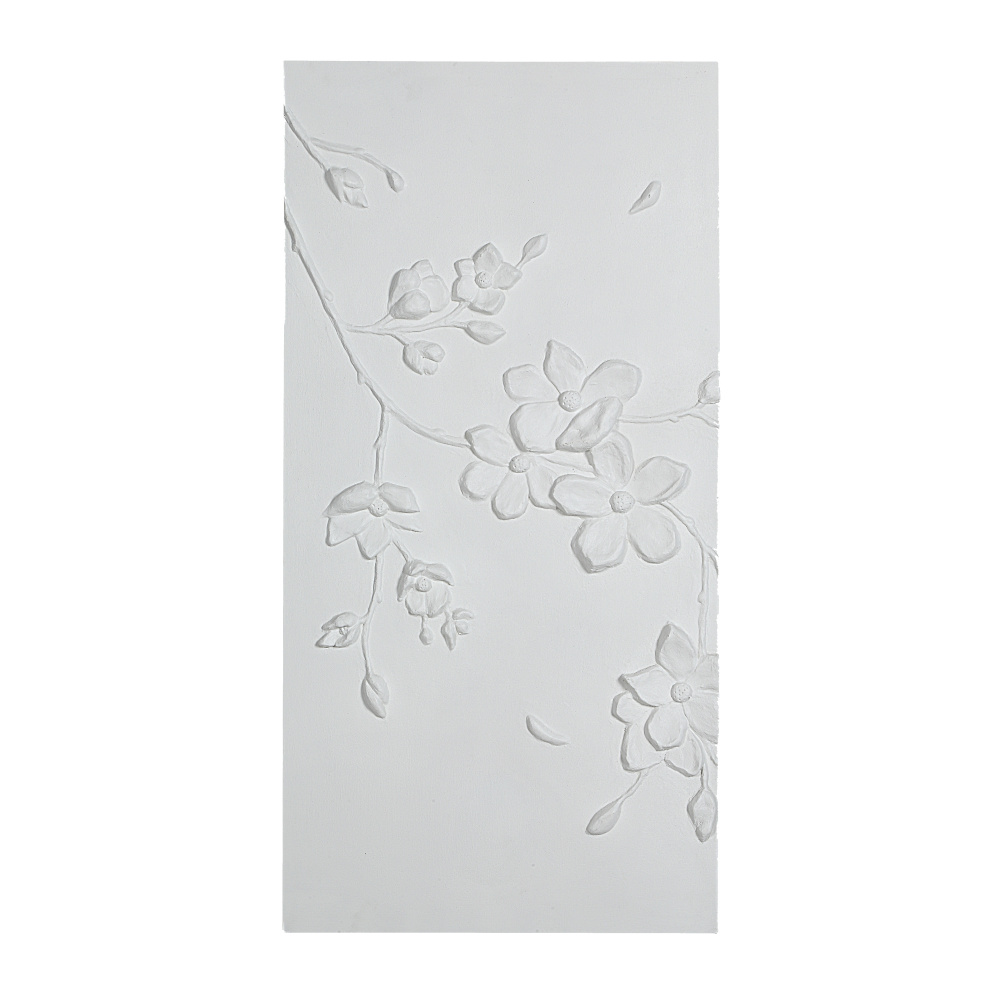 Spanning nearly 5 feet, this bloom-filled wall art is just the piece you need to add beautiful botanical style to a large wall. Composed of three high-quality canvases, this unique triptych features an array of hand-painted multidimensional shapes for a dramatic effect that delivers a transitional touch to any interior.