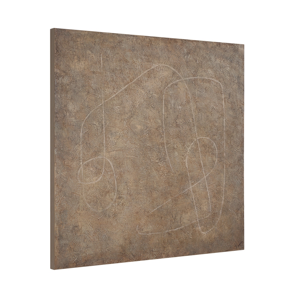 Minimalist in its aesthetic and timeless in its palette, this modern canvas wall art is poised to deliver an unforgettable impact to any contemporary interior. Hand painted on high-quality cotton canvas that’s stretched with a continuous edge, this frameless painting has a gallery feel that will elevate any room lucky enough to have it.