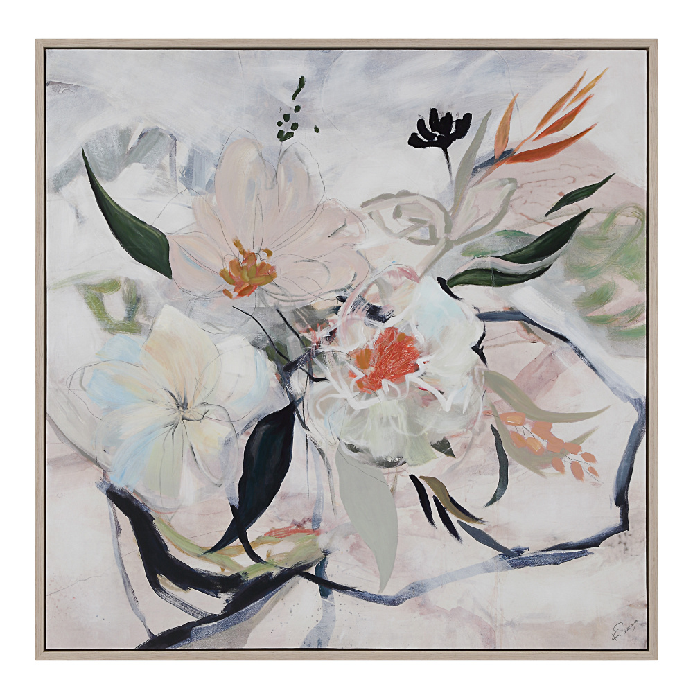 Enhance your space with the stunning Daye 50" Wide Canvas Art with Wood Frame. This minimalist piece displays stunning artwork on a wide canvas stretched over a sturdy wood frame that's painted in sleek cream. The sizeable design makes it an excellent focal point in any room. The hand-painted technique adds genuine craftsmanship and one-of-a-kind artistry to the design giving your space a unique touch. The continued edges are seamlessly finished providing a polished look from every angle. No matter which orientation you choose, vertical or horizontal, this canvas is pre-framed for immediate display ensuring that it'll be the focal point of any room.