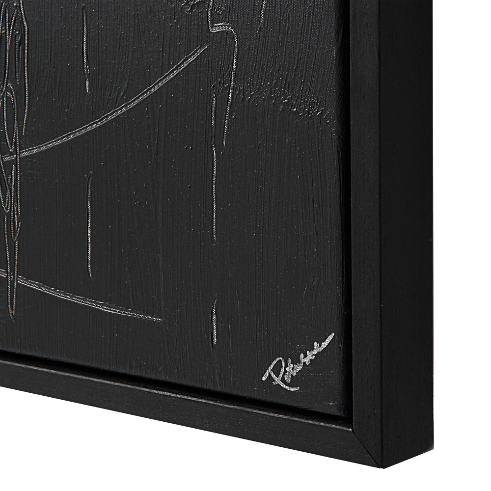 Japanese style abstract design takes on a sleek yet playful energy in this framed piece of canvas art. With the black backdrop offering a chalkboard-like presence, this canvas painting adds a unique touch to a gallery wall or sets the tone for a room when styled solo. Optimal for a modern or industrial interior, it is at its best when complemented by streamlined furnishings.