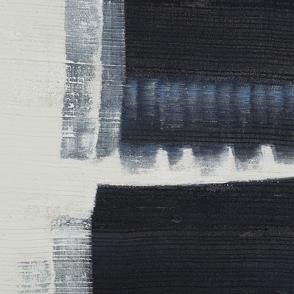 Framed in rich walnut veneer wood and composed with an abstract aesthetic, this hand-painted canvas art has a mid-century modern-inspired vibe that suits many contemporary settings. Reminiscent of the works of Mark Rothko, this oversized, textured painting brings modern art within reach.