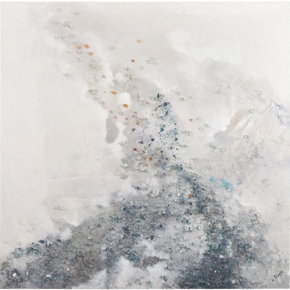 Gloss and high glass details of swirling neutral tones create unique visual displays within this canvas art design. Its marble-esque pattern invites viewers to imagine and create their own scene. Set horizontally or vertically within the bedroom or living space , it has a calming quality while still adding dramatic flair.