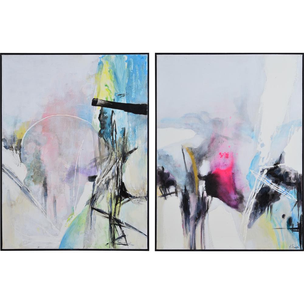 Graffiti gets an elegant twist in this set of paintings. With pops of colour, bold black strokes, and a high gloss finish these paintings bring a creative touch to the modern living room.