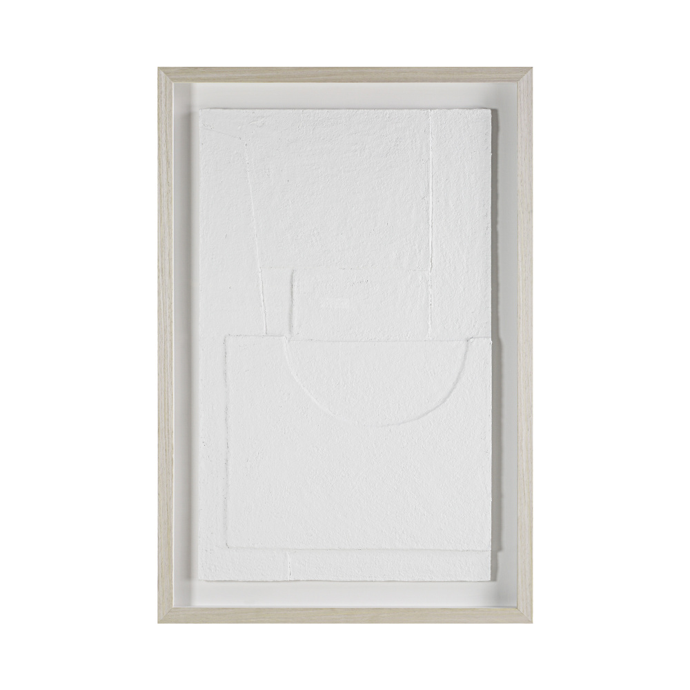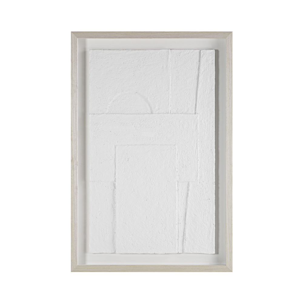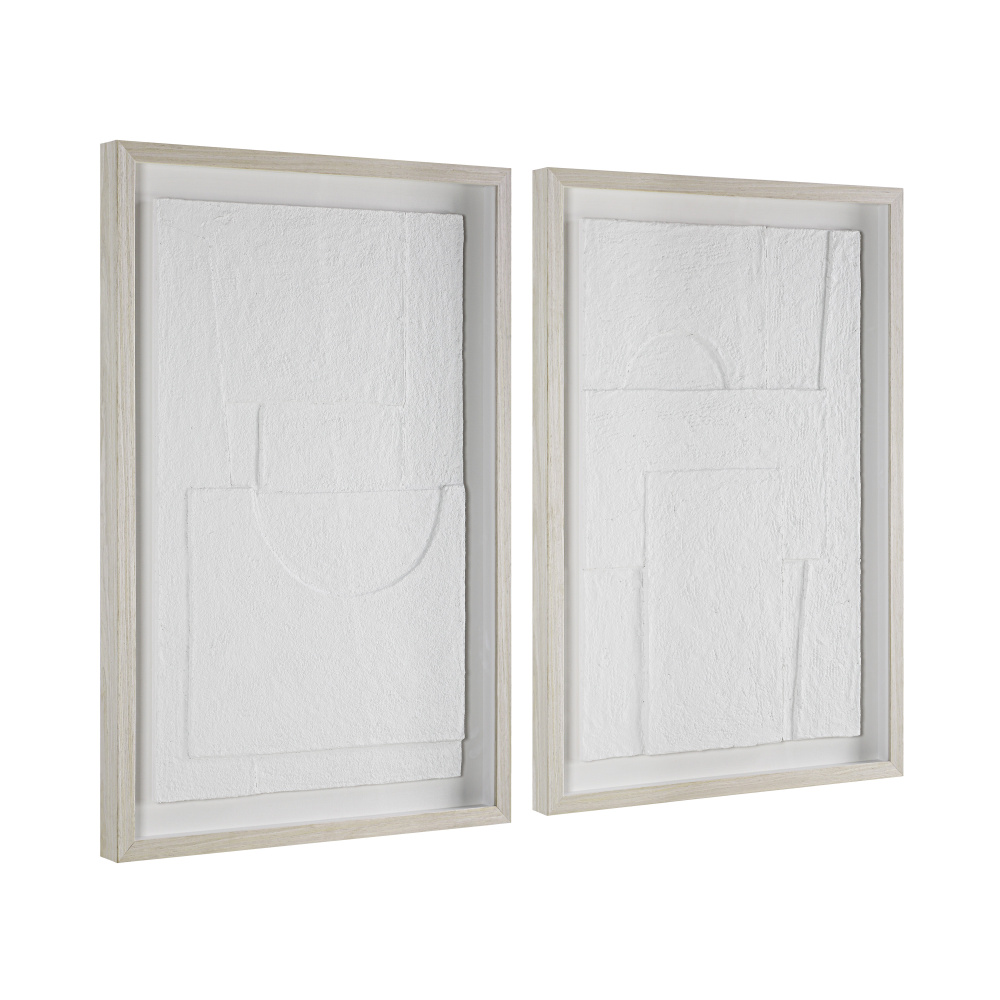 Give your project standout style with this duo of richly textured wall art. Designed in neutral hues with a papier mache look, each canvas delivers depth and visual interest that’s perfect for modern spaces. Light walnut framing and floating mounting under glass promise a high-end look and feel that complements any decor.