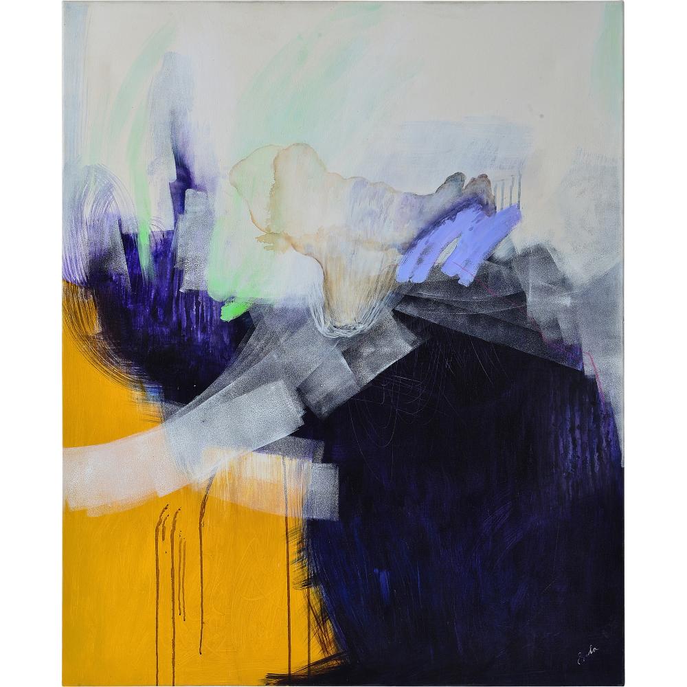 Set on canvas, this painting sets a welcoming, warm tone for the traditional interior. While the rich blue background brings a grounded, calming appeal to the piece, the white, yellow, and pink painted flowers provide a cheerful and lively appeal. Hanging vertically or horizontally, it carries the fresh quality of its subject into the space.