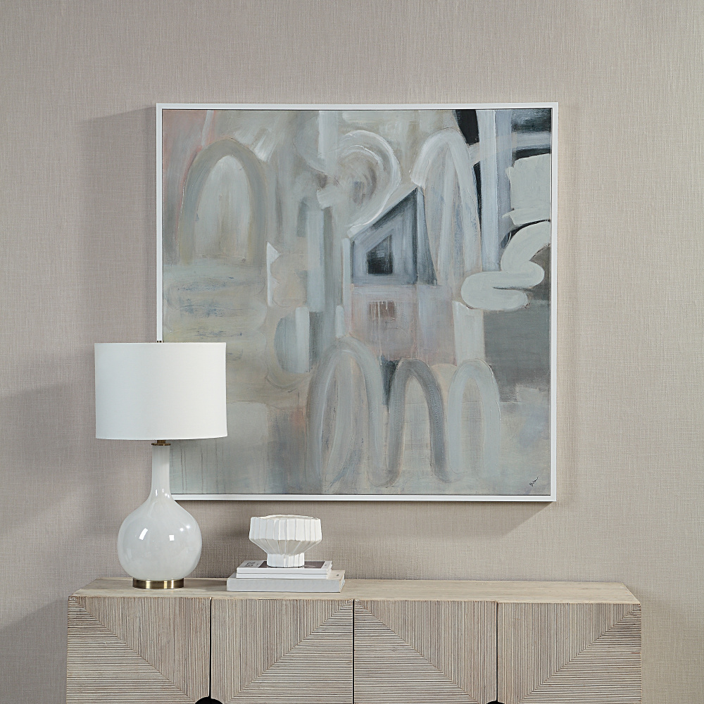 Palazzo 48" Wide Canvas Art with Wood Frame, Painted White