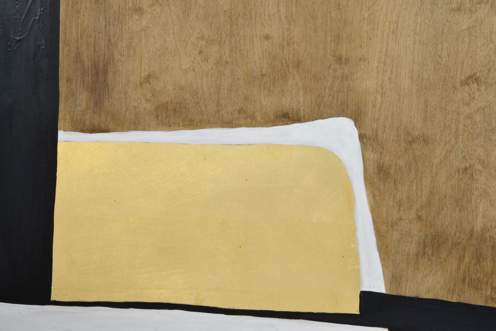 Showcase your unique style with this black, white and wood design. The hand painted polywood’s square shape features gold leaf accents for depth and interest. It adds instant impact when placed in a powder room.