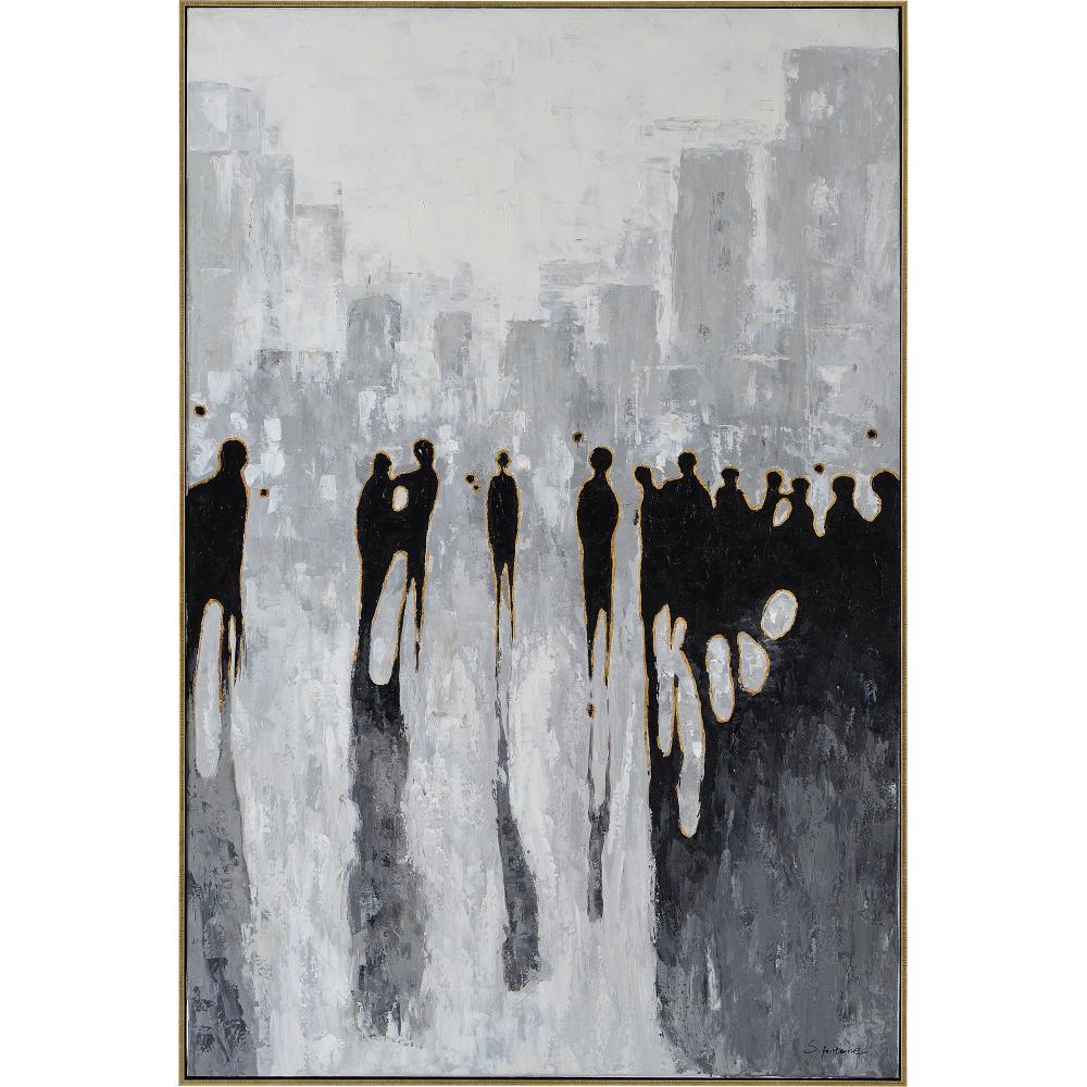 Intricate details of a field's grass growing, blending, and intertwining is captured in a creative fashion in this work of art. Fitting for both the traditional and contemporary interior, its palette of blues has a versatile affect. Its horizontal rectangular structure is enhanced when placed above a focal piece of furniture such as a couch or a bed.