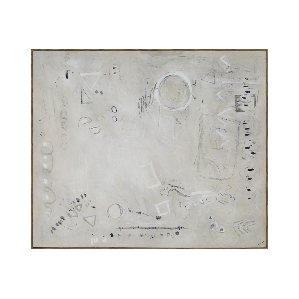 Minimalist in its design, this abstract wall art has a Paul Klee vibe that will bring a modern art gallery look to any stylish interior. Framed in medium walnut, its high-quality canvas features texture and tonal shades for a look that blends seamlessly into your design plans. And with 2-way hanging, you have the flexibility to hang this oversized painting anywhere and any way you like.