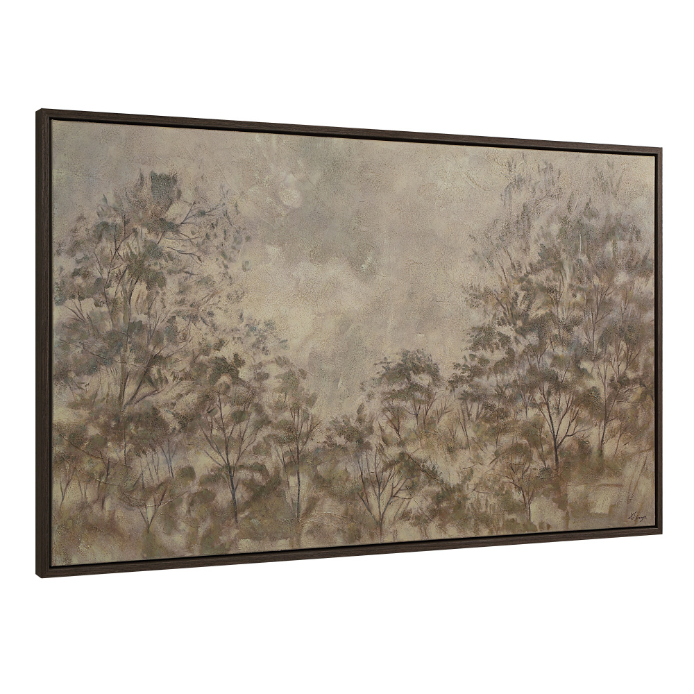 Exactly what the blank wall in your design project has been waiting for, this hand-painted landscape piece will elevate any transitional space. With proportions that are suitable for hanging above a fireplace, sofa or bed, this 70-inch-long canvas art uses tonal texture to make a beautiful, large-scale impact.
