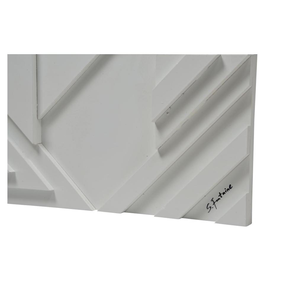 High-relief stripes and assorted stacked triangles create the stark composition of this three-dimensional geometric wall decoration. The minimalist Matte white finish strips away unnecessary conventions of color. The interpretive nature of the abstract art piece can be hung horizontally or vertically, providing a sense of purpose to an empty interior wall.