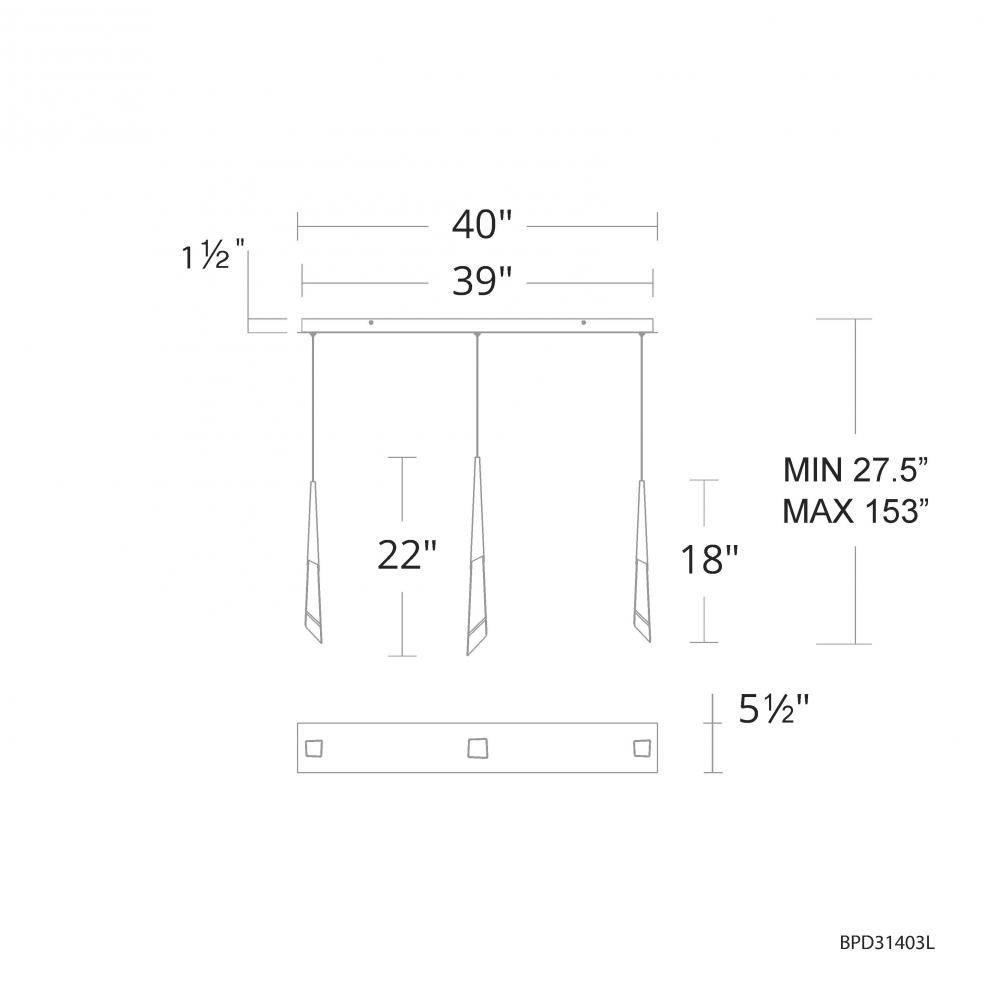 Solitude 3 Light 120-277V Multi-Light Pendant (Linear Canopy) in Aged Brass with Optic Haze Quartz